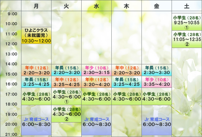 ※ジュニア育成コースは、体操選手を目指すコースです ※一般クラスは定員になり次第募集を締め切ります ※キャンセル待ちにお申し込みの上、体験および入会をお待ちください